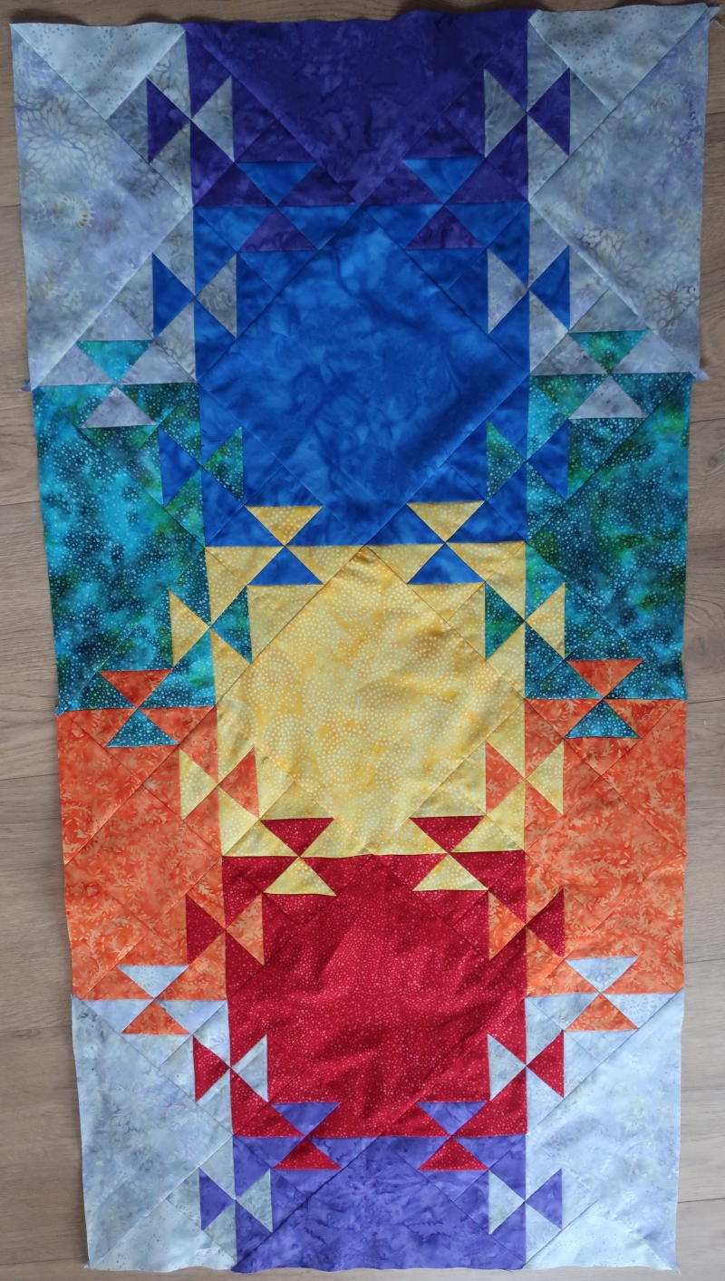 Am 13. Januar 2026 beginnt unser Frühling/Sommer-Kurs. Das Muster, an dem wir uns versuchen wollen, heißt „Shimmery“. Es besteht aus einem großen Quadrat (z. B. aus einem Blumenstoff) und um ihn herum werden Dreiecke „drapiert“. Dieses Muster bietet schon Anfängern die Möglichkeit, schöne Quilts zu nähen. Es braucht nur etwas Erfahrung im Umgang mit der Nähmaschine. Ob ein Tischläufer, ein Wandbild oder sogar ein Quilt genäht wird, bleibt jedem selbst überlassen. Am ersten Kurstag werden Stoff- und Musterauswahl besprochen und es kann auch schon ein erstes Probestück gefertigt werden. Nähmaschinen sind vorhanden.